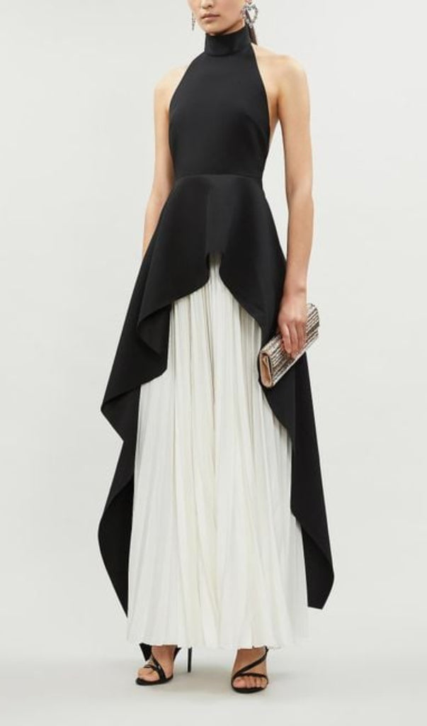 BANDAGE HIGH NECK PLEATED PEPLUM MAXI DRESS