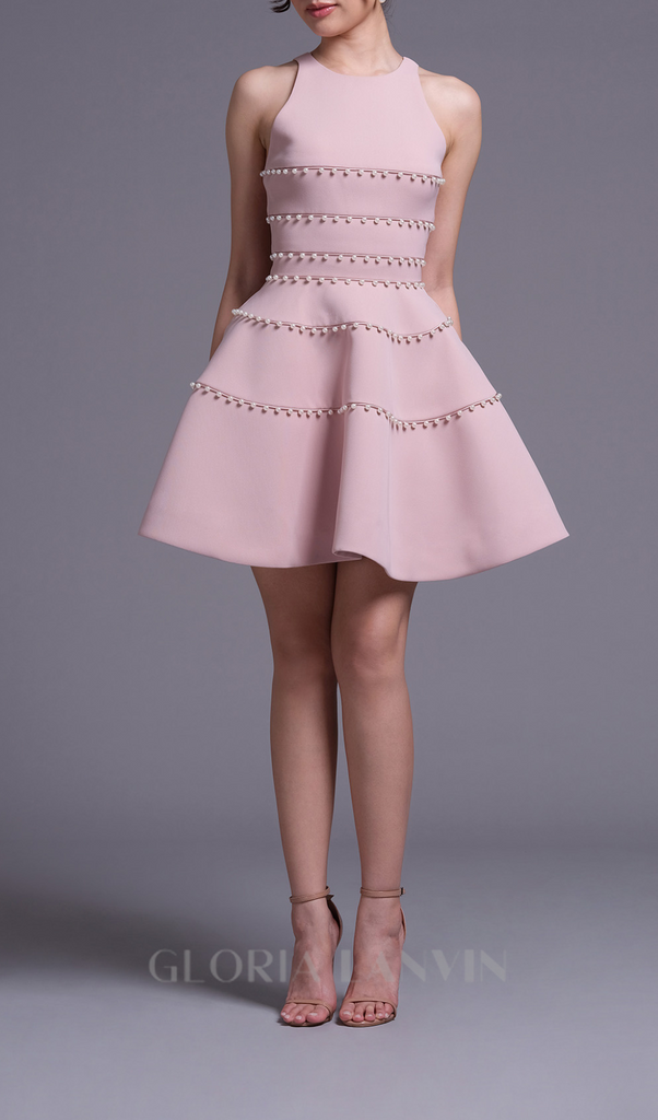 A-LINE MINIDRESS WITH PEARL DETAIL IN PINK