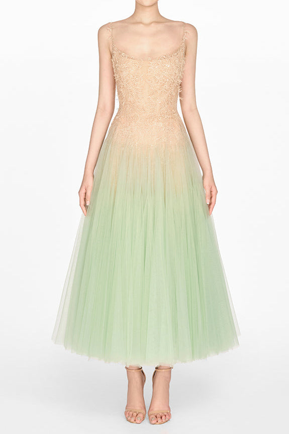AGNES GOLD LACE CROCHET CUTOUT MIDI DRESS