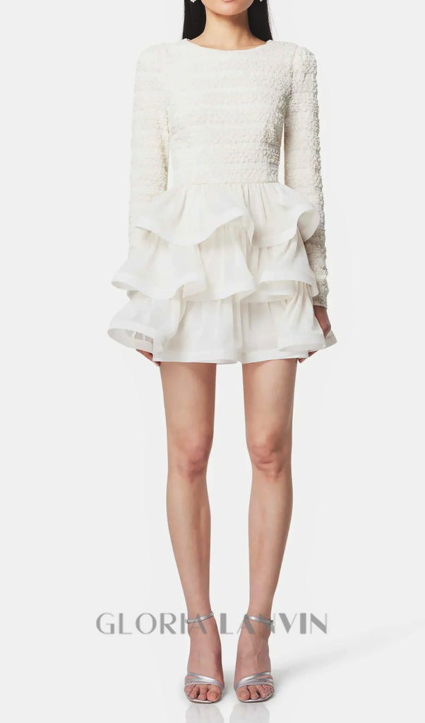 CREAM SEQUIN BOUCLE TAILORED MINI DRESS