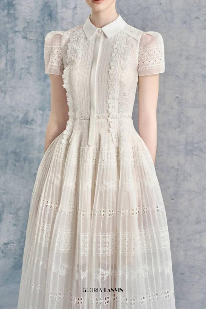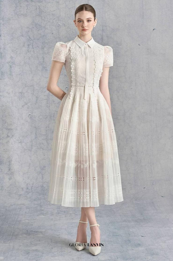 This apricot midi dress features delicate lace with hollow embroidery, offering a refined and airy aesthetic. Its midi length provides elegant coverage, making it suitable for both formal occasions and stylish daytime events. The intricate lacework enhances breathability and adds a sophisticated texture, ensuring a graceful silhouette with every wear. Perfect for those seeking a blend of classic craftsmanship and contemporary design.