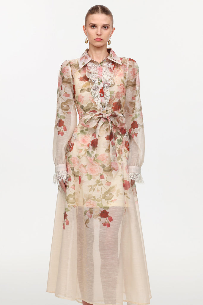 shirley Long Sleeve floral Printed Woven Maxi Dress
