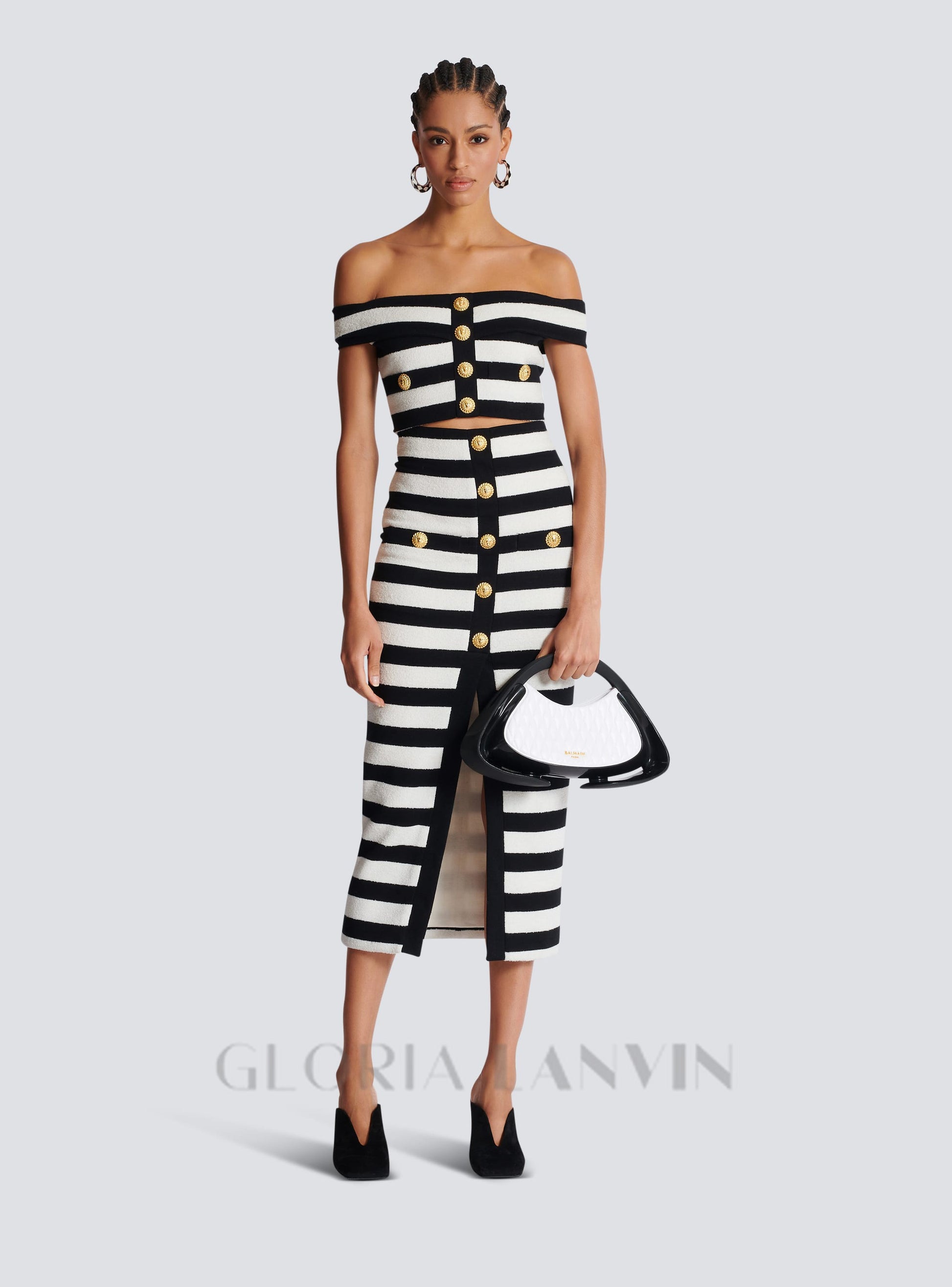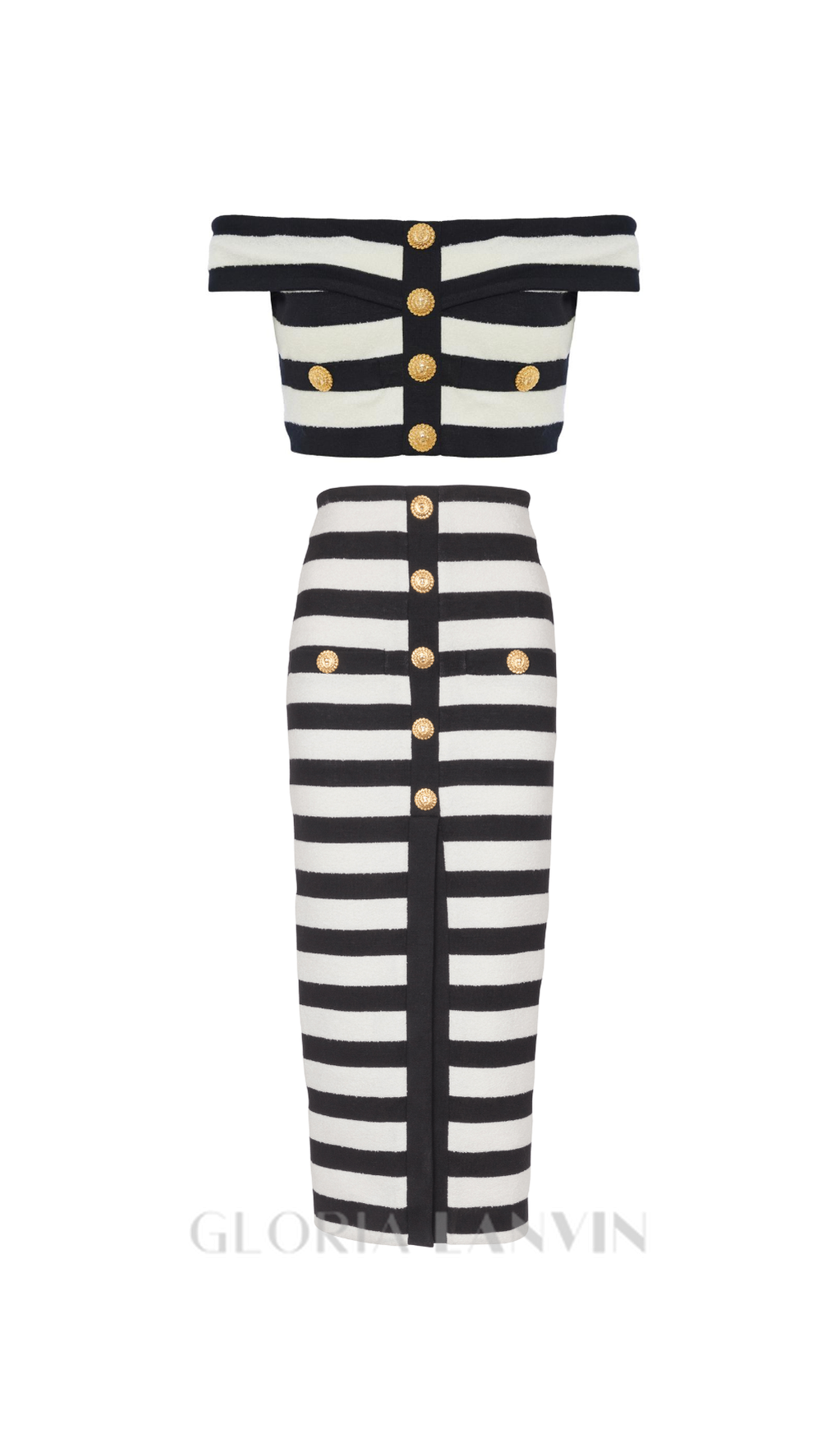 TWO-TONE EMBELLISHED KNITTED CROPPED TOP SKIRT SET