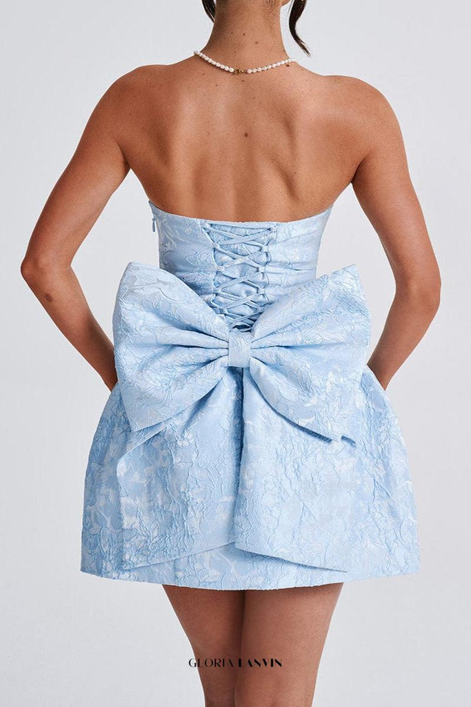 THE dress of the season has landed and you're going to be obsessed. Meet Elenora, our dreamy mini with a pretty tulip shaped skirt and waist cinching bodice. This strapless style is complete with lace up and a detachable, oversized bow to the back for perfect feminine drama.