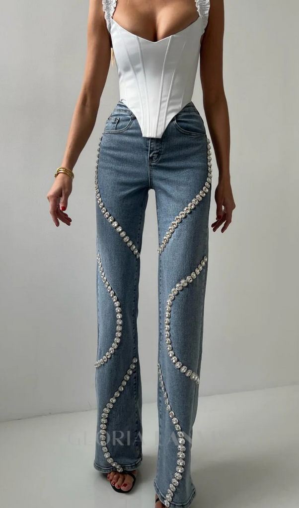 CRYSTAL TRIM TWO PIECE SET IN SKY BLUE