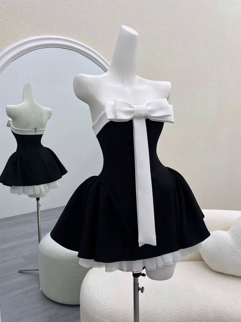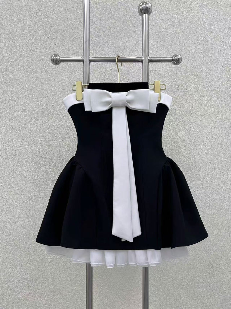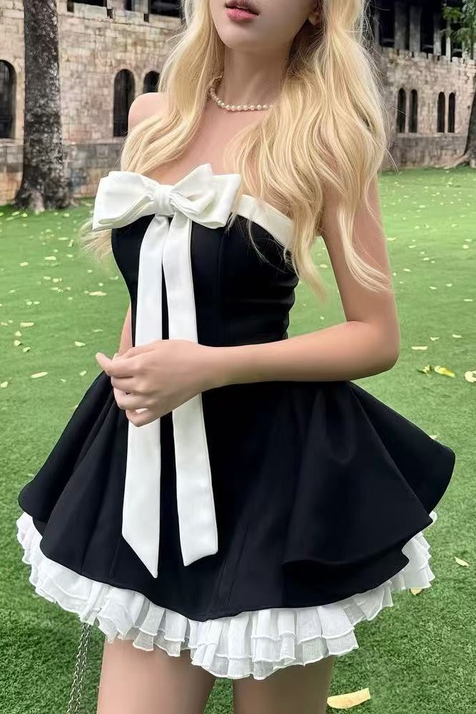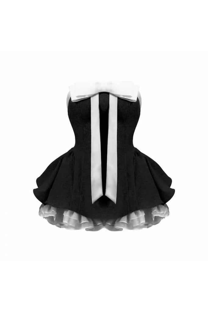 Arafa Bow Lace Ruffle Strapless Mini Dress In Black – Gloria Lanvin
