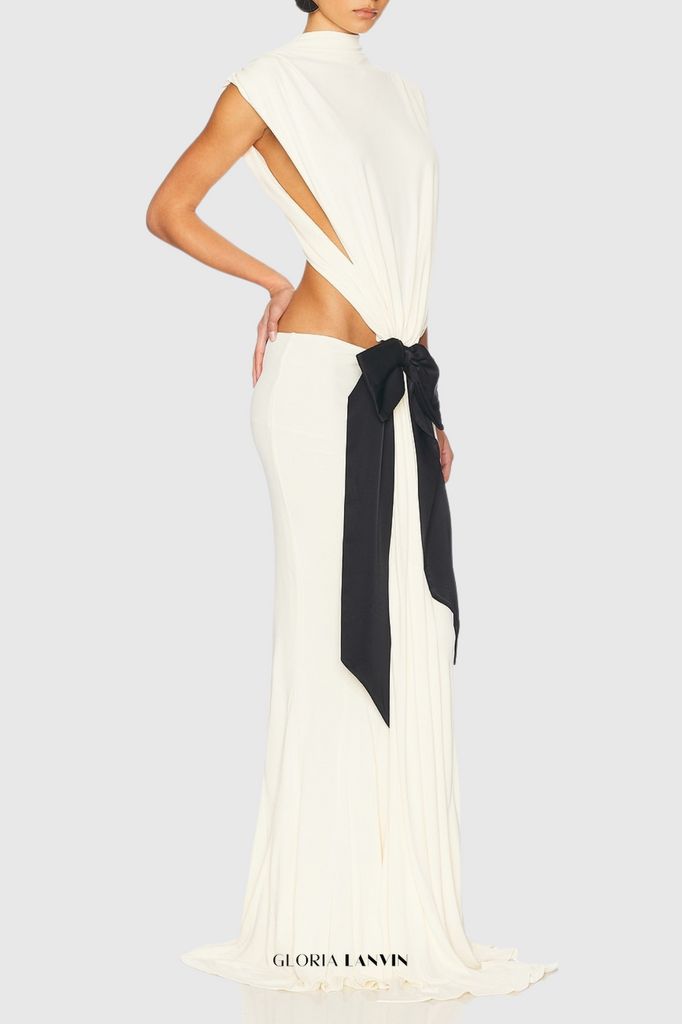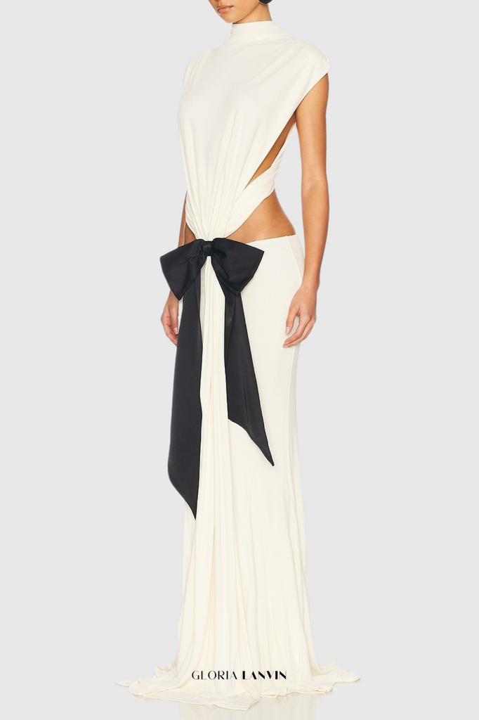 bernice Bow Patch Cut Backless Maxi Dress in white – Gloria Lanvin