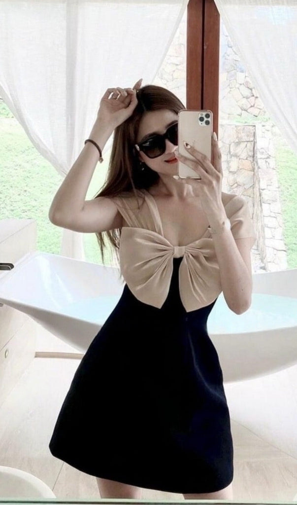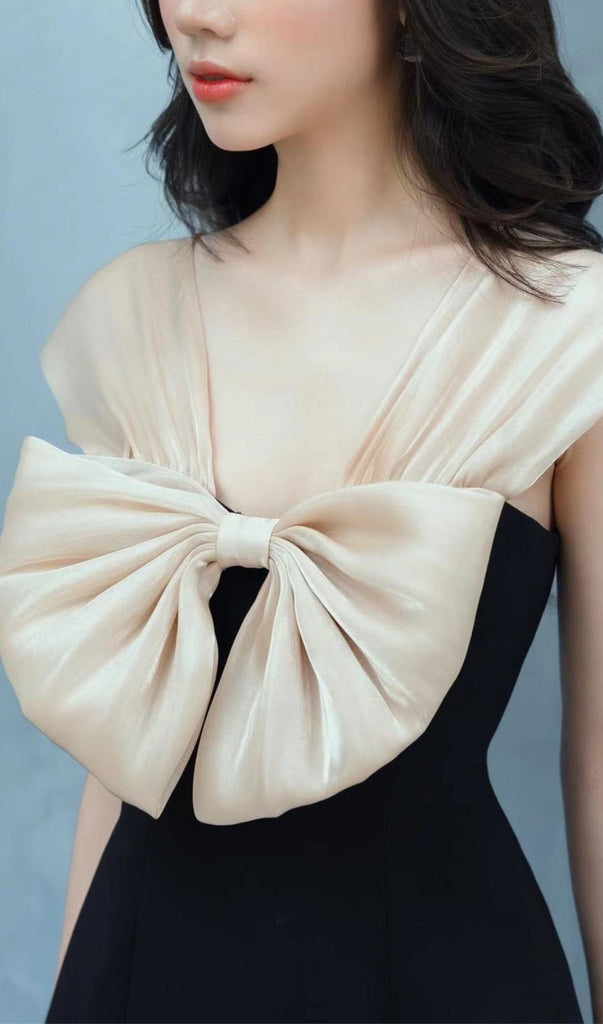 BLACK V NECK BOW A LINE MINI DRESS – Gloria Lanvin