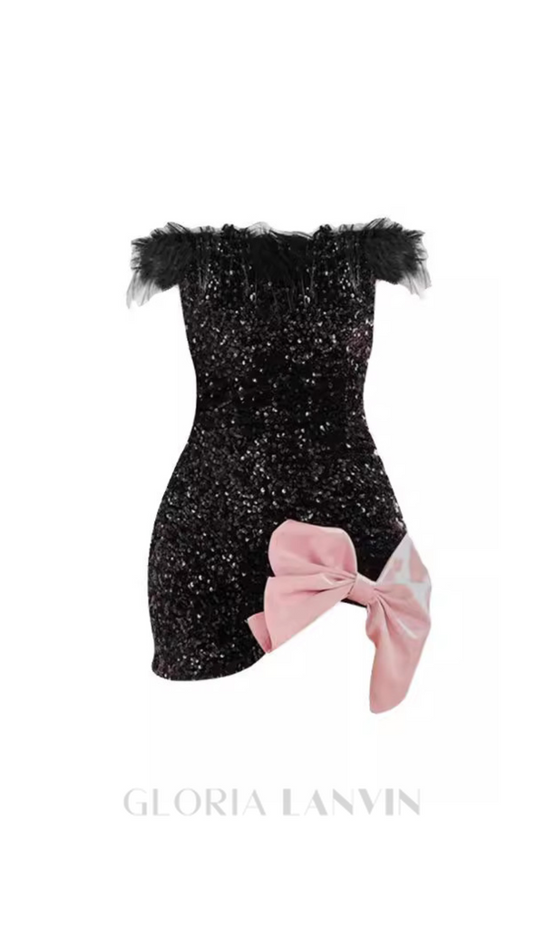 Stay fashionable and elegant with our black bow-embellished sequined mini dress. Made with high-quality materials, this dress features a stunning bow detail and eye-catching sequins for a touch of glamour. Perfect for any formal event, you'll be the center of attention while feeling comfortable and confident.