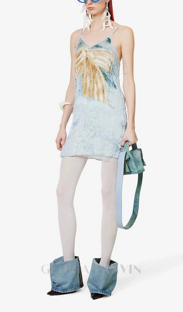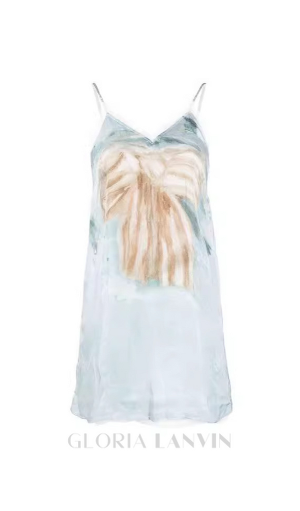 BOW-PRINT TULLE-TRIMS SATIN MINI DRESS IN PALE BLUE – Gloria Lanvin