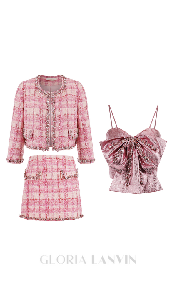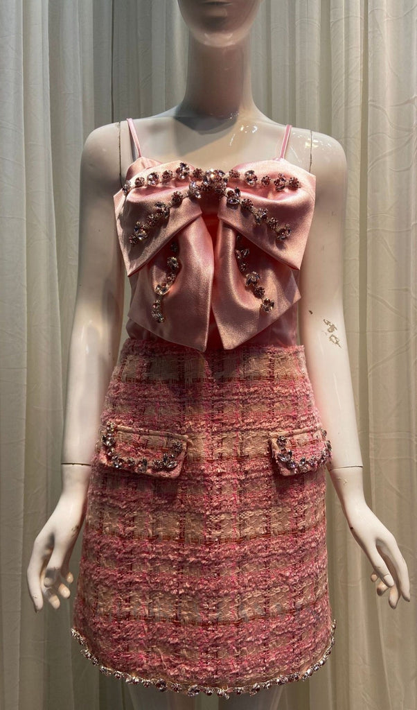 a must-have for any fashion-forward individual. Made with high-quality materials, this set features a beautiful bow design adorned with sparkling rhinestones. Elevate your outfit with this elegant accessory that exudes style and sophistication.
