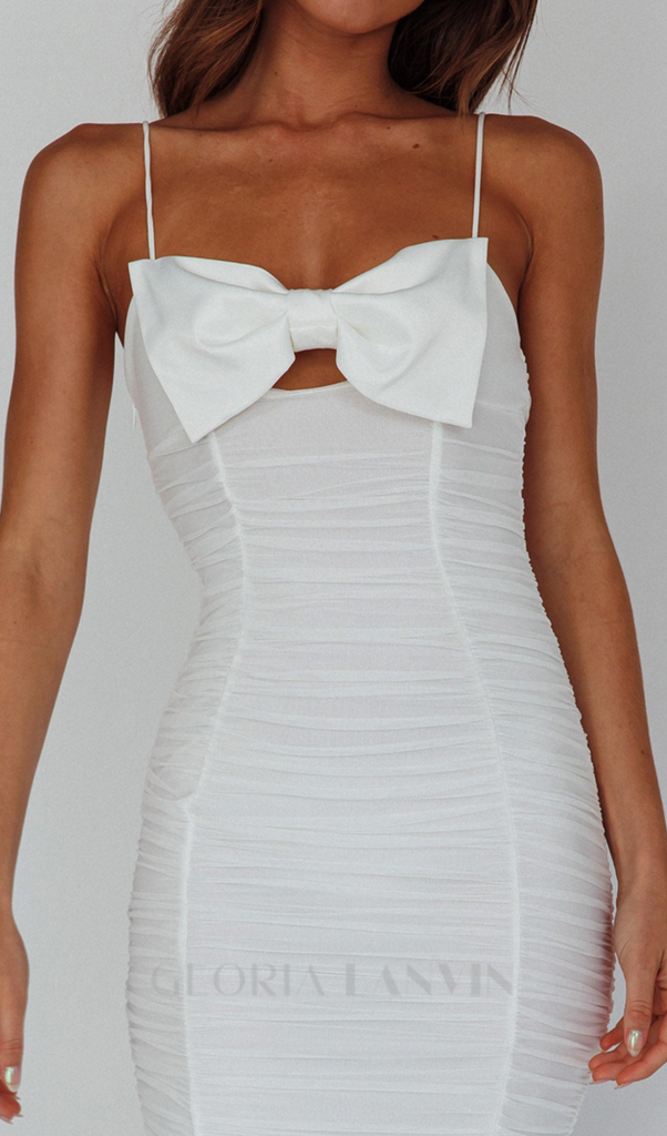 bow ruched midi dress in white – Gloria Lanvin