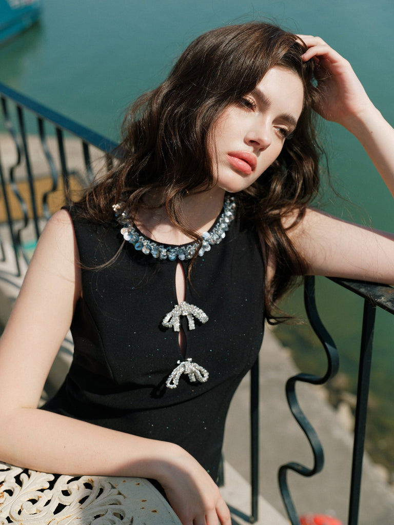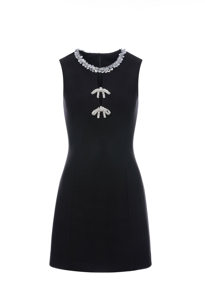 Expertly crafted for sophisticated elegance, the Cecilia Hollow Bow mini Dress features a striking black silhouette with distinctive hollow bow detailing. This versatile piece transitions effortlessly from day to evening occasions, offering both refined style and comfortable wear. The mini length creates a flattering profile while maintaining a polished aesthetic suitable for various styling options.