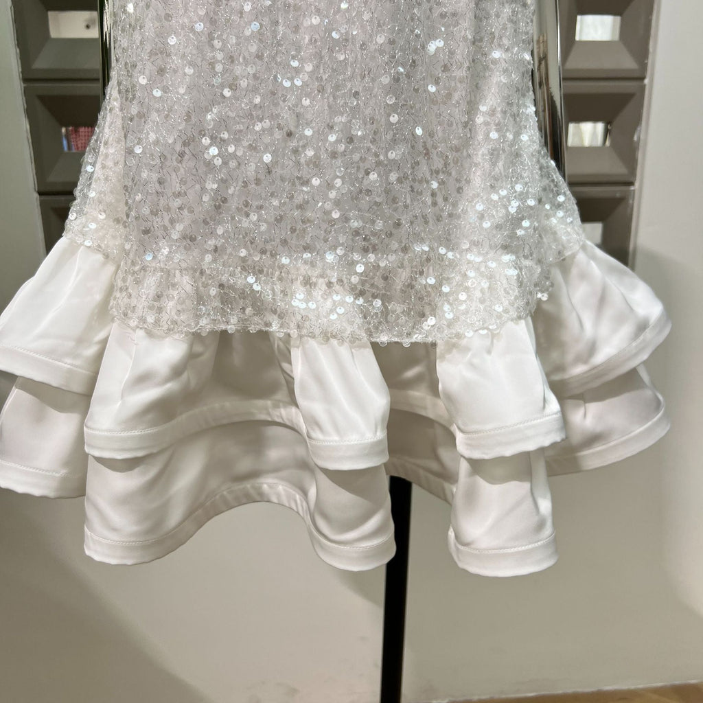 gemma sequin Sleeveless Bowknot Mini Dress in white