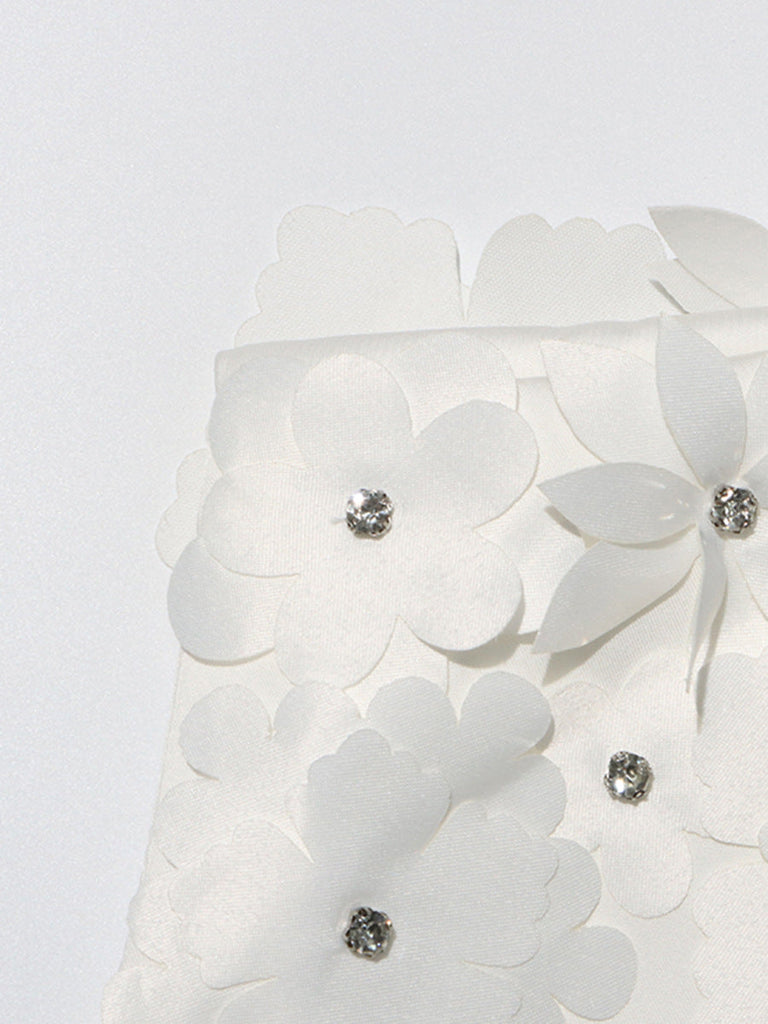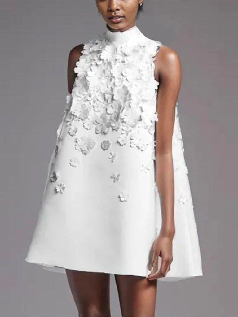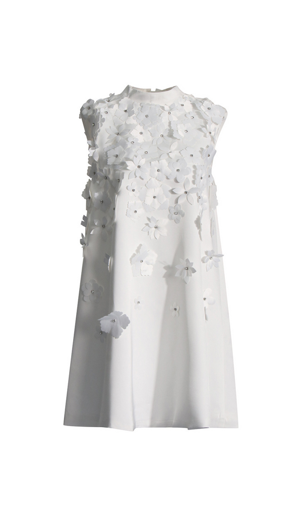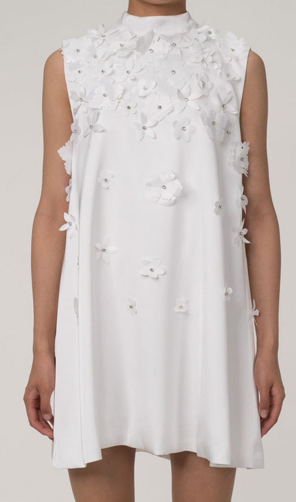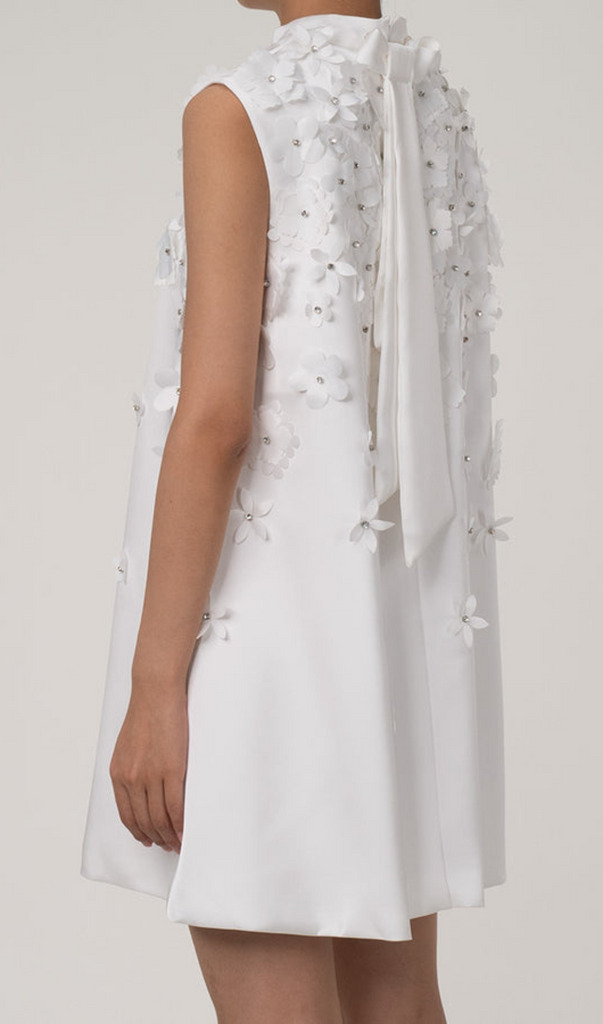 LYDIA FLOWER APPLIQUE MOCK NECK BOW TRIM MINI DRESS – Gloria Lanvin