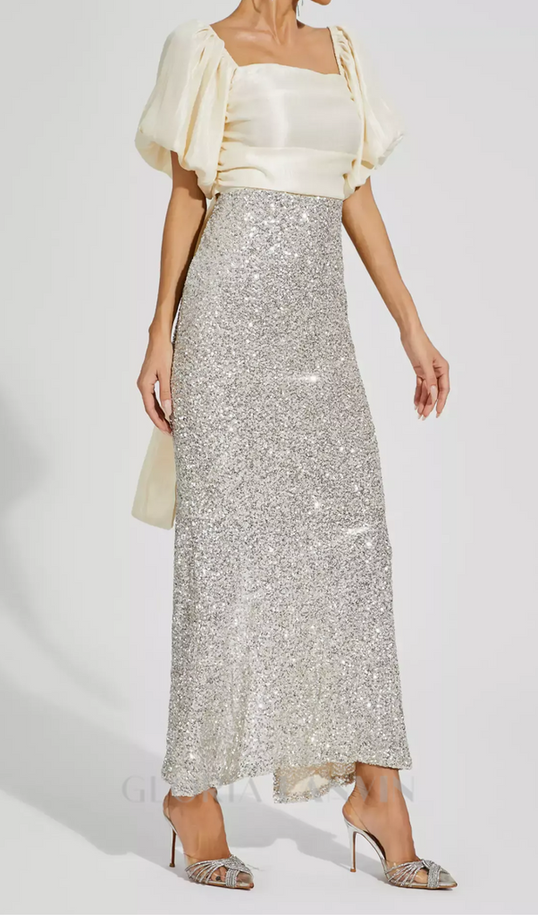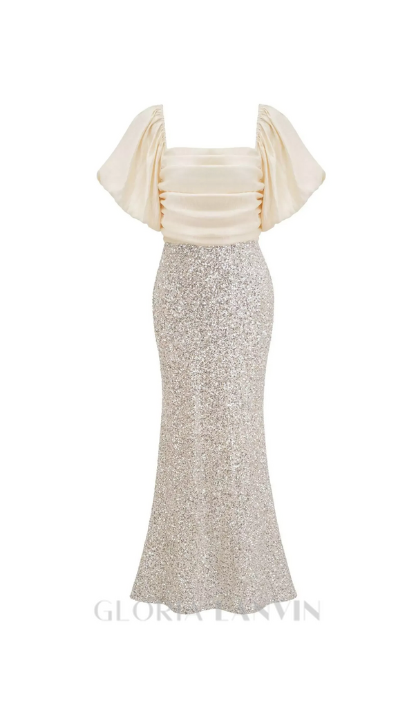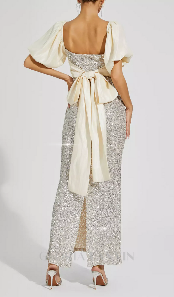 This stunning dress features intricate sequin embellishments and a delicate bow detail, making it the perfect choice for any special occasion. Feel confident and glamorous in this eye-catching dress.