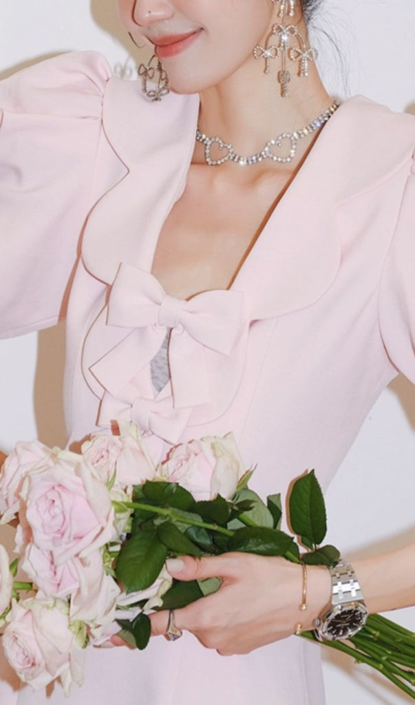 Look sweet and stylish in this Pink Bow Puff Sleeve Mini Dress! With its cute bow detailing and elegant fit, you'll be looking classy and sassy wherever you go. Perfect for dates and other special occasions, this dress will have you ready for anything.