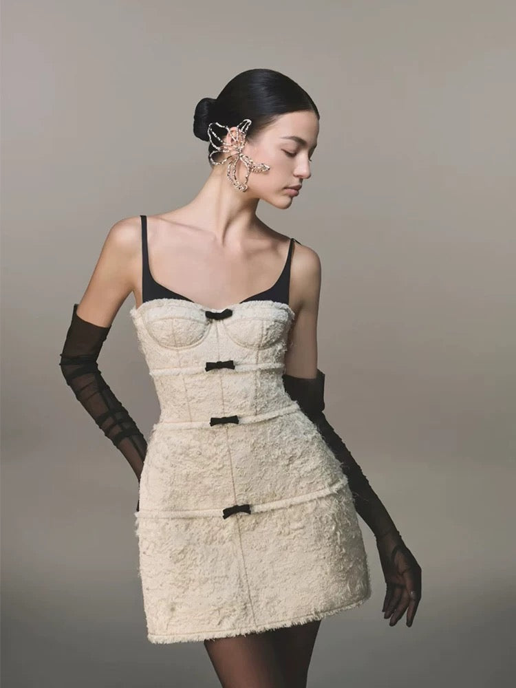 This exquisite Santos Bow Jacquard Mini Dress is a masterpiece of luxury and sophistication. Its intricate jacquard fabric, adorned with delicate bows, makes a statement of elegance and style. The perfect addition to your wardrobe, this dress is sure to turn heads and elevate your look to new heights.
