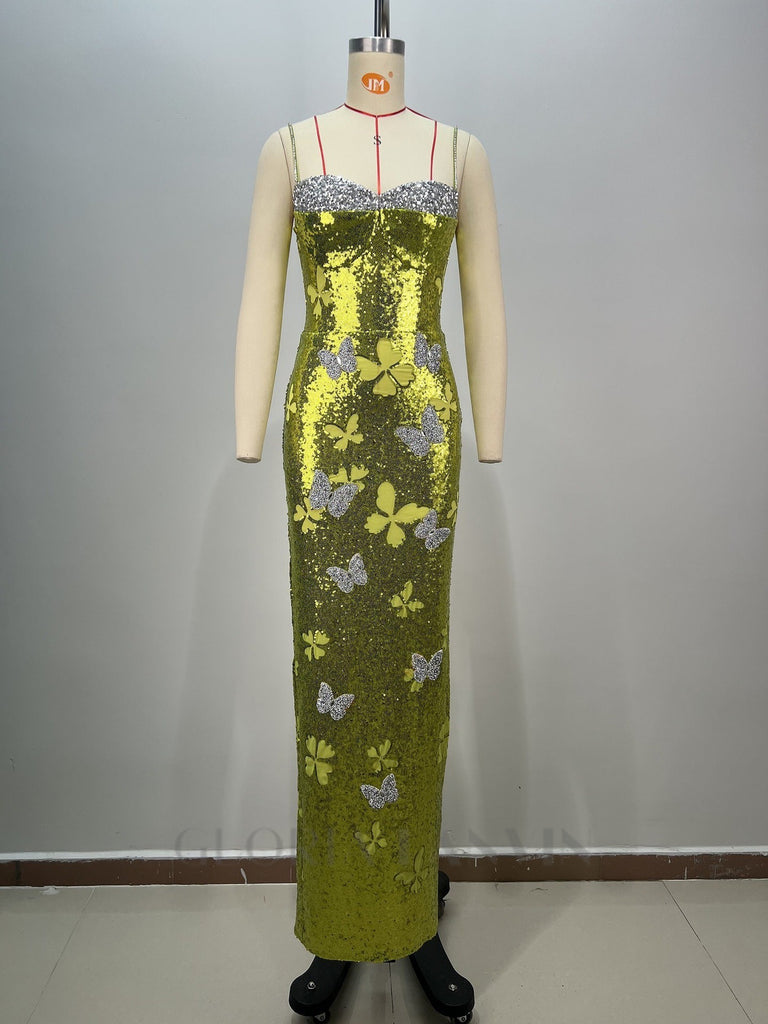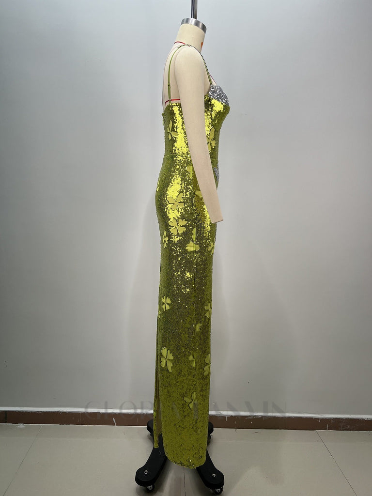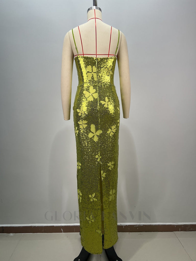 sequin Bow print bodycon maxi dress in green – Gloria Lanvin