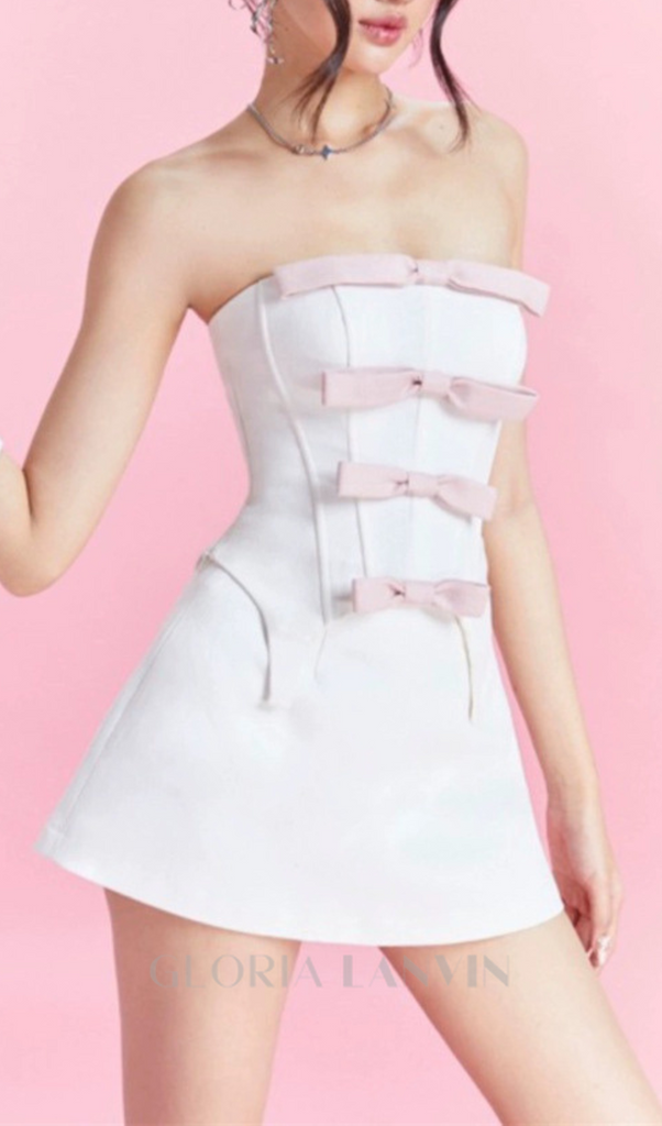 STRAPLESS BOW MINI A LINE DRESS IN WHITE – Gloria Lanvin