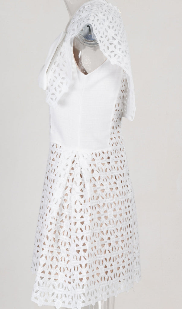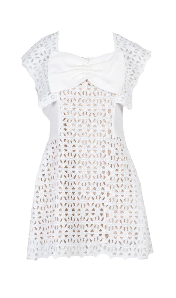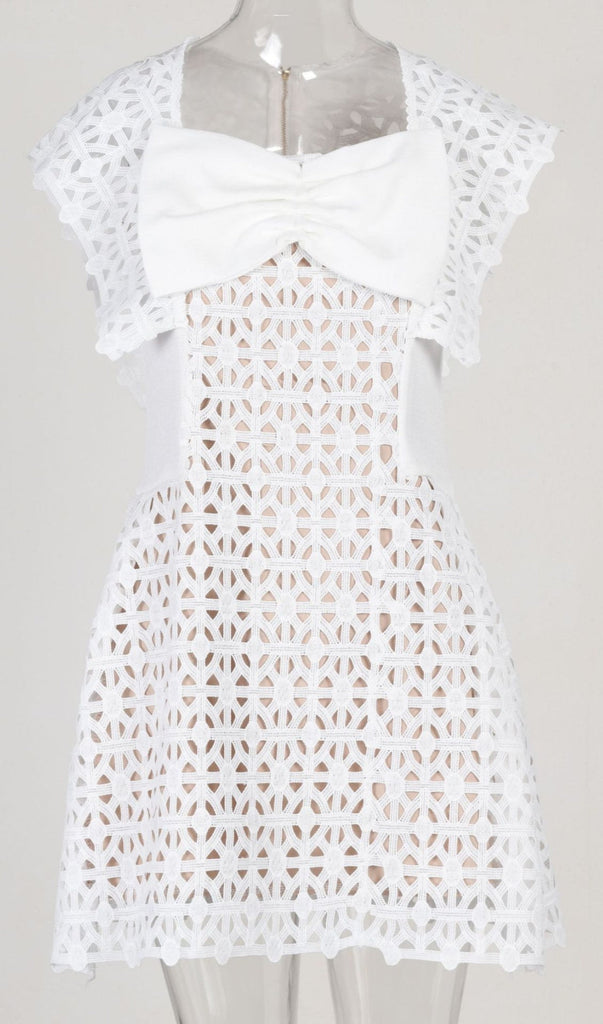 This white bow embroidered dress is the perfect way to make a statement! With its chic hollow design and cute bow accent, you're sure to turn heads wherever you go! Looking for something special? This dress is a must-have!