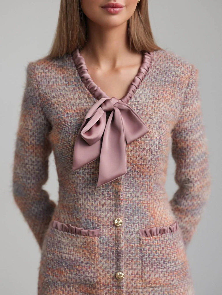 The Xylia Bow V-Neck Long Sleeve Mini Dress combines sophisticated tailoring with playful design elements. This multicolor piece features a flattering V-neckline and long sleeves for versatile styling across seasons. The signature bow detail adds a refined touch, while the mini length creates a modern silhouette perfect for both casual outings and elevated occasions. The multicolor palette offers effortless coordination with your existing wardrobe, making this dress a versatile staple for any fashion-forward collection.