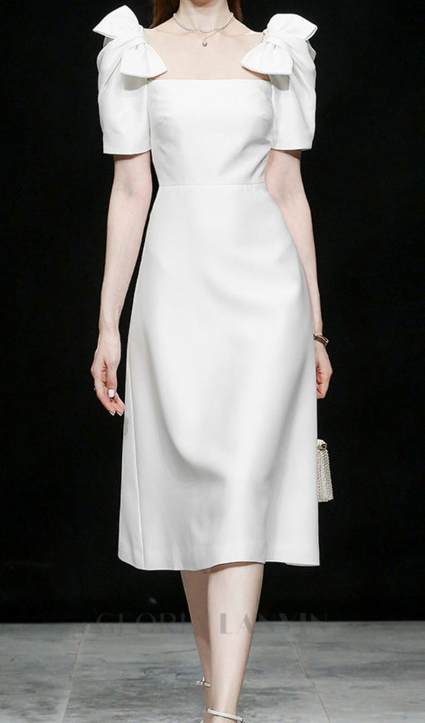 BOW-EMBELLISHED MIDI DRESS IN WHITE