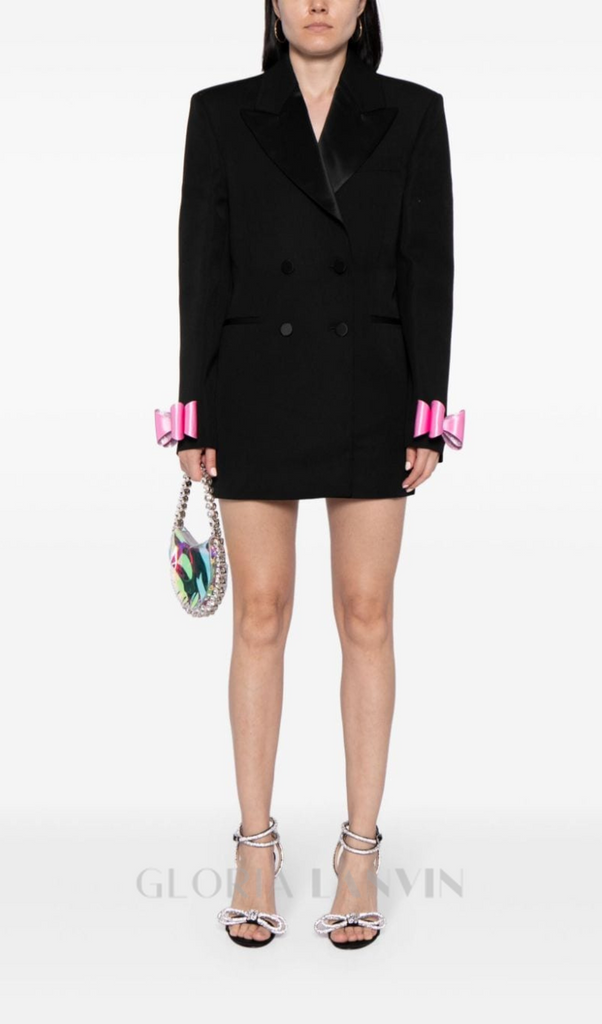 INGRID BOW-EMBELLISHED WOOL BLACK BLAZER DRESS