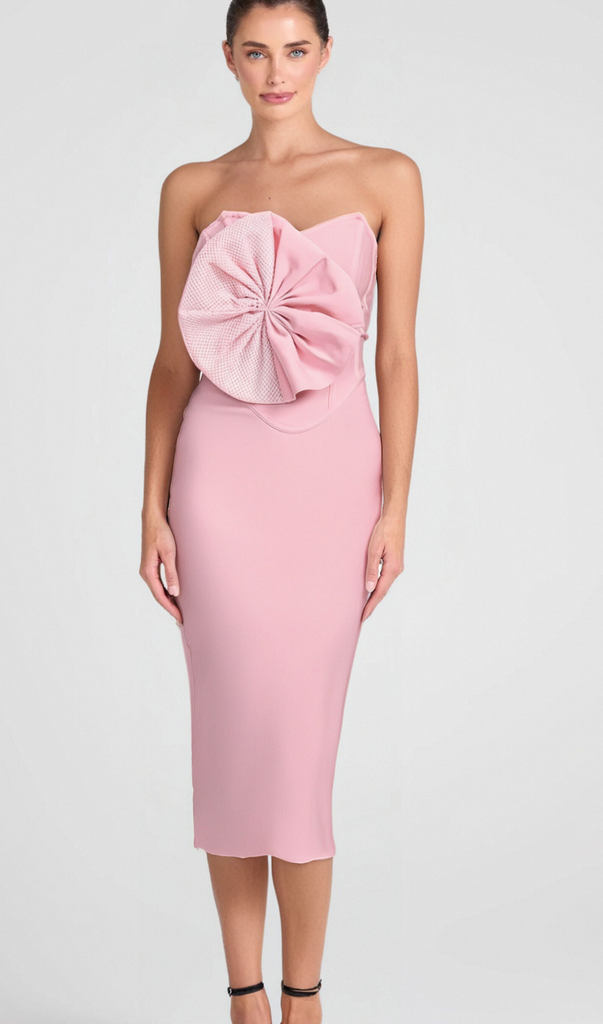 ANNABELLE BOWKNOT BANDAGE BUSTIER MIDI DRESS IN PINK