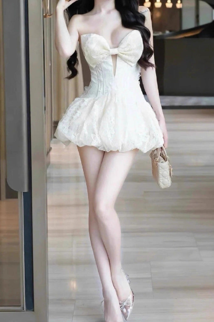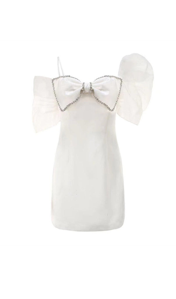 WHITE PUFF SLEEVE BOW MINI DRESS