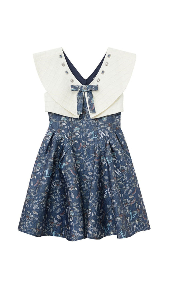 BLUE BOW SWEETHEART WAISTBAND SLEEVELESS FLORAL MINI DRESS