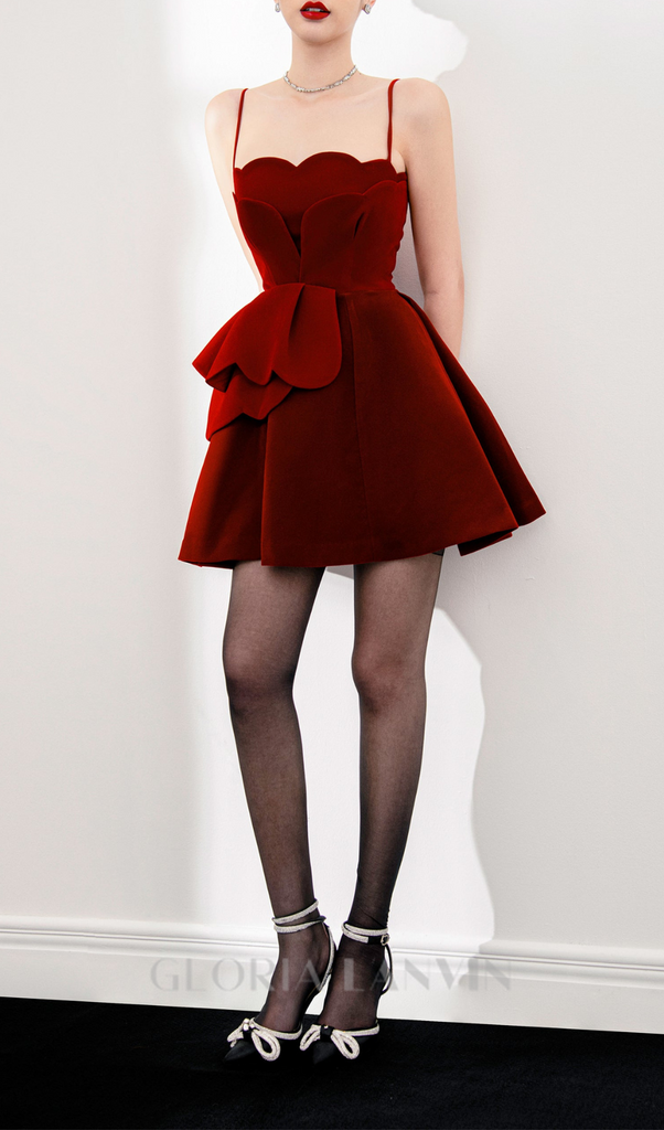 Tulip Flower A-line Straight Across Neck Velvet Mini Dress