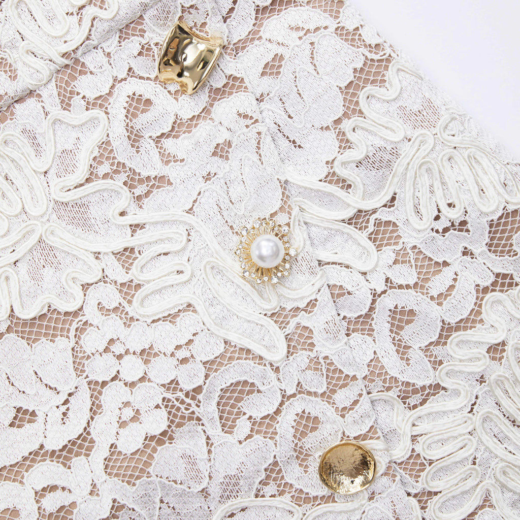 Perfect for any occasion, the intricate lace detailing adds a touch of elegance while the mini length keeps it fun and flirty. Get ready to turn heads and have a great time in this unique dress."