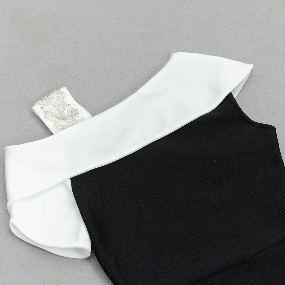 Its unique diagonal design and dramatic fishtail cut offer a daring twist to the classic midi dress. Perfect for the risk-takers who want to make a statement at any event."
