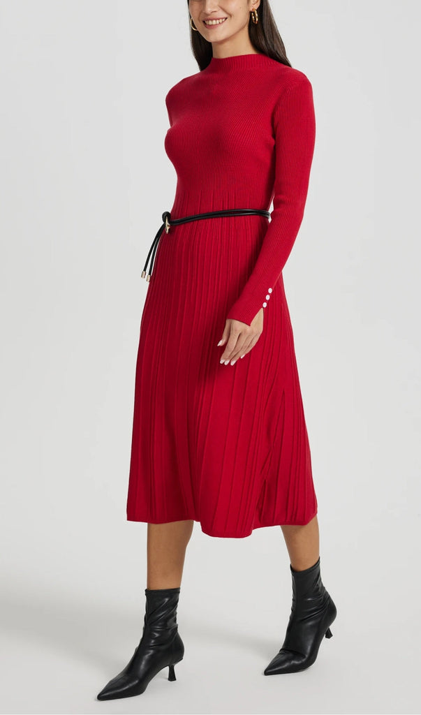 Look amazing and feel comfortable in this Long Sleeve Knit Dress! It features a cozy knit fabrication, long sleeves, and a charming midi length. Perfect for any occasion when you want to make a lasting impression!