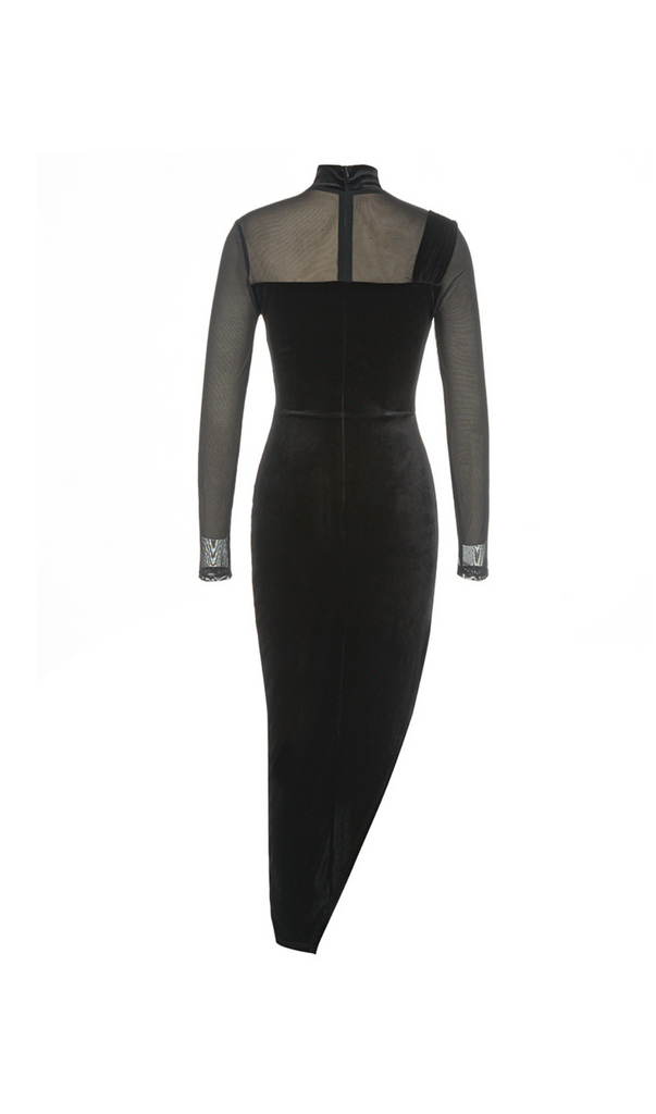 Made with luxurious velvet fabric and featuring a unique mesh design, this dress will make heads turn and empower you to embrace your daring spirit. Perfect for any occasion, this dress will make you stand out from the crowd!"