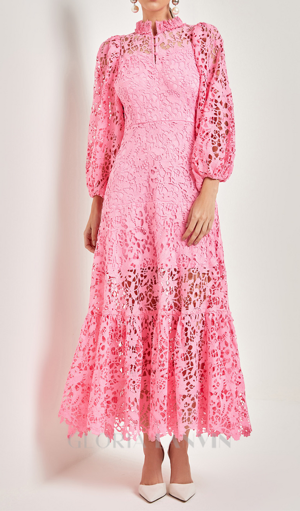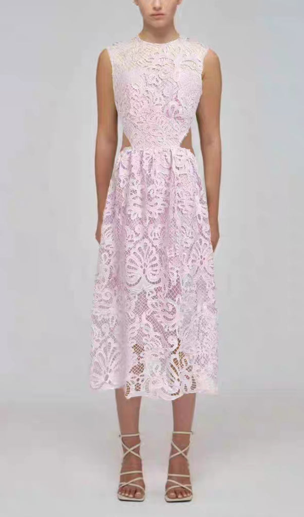 FANNY CUT-OUT LACE EMBROIDERY MIDI DRESS IN PINK