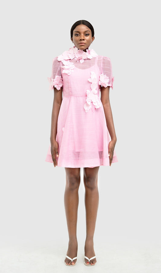 PINK ROSE FLORAL STRAPLESS MINI DRESS