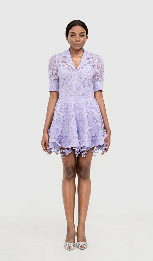 Sequin Lace Embellishments Textured Mini Dress In Purple