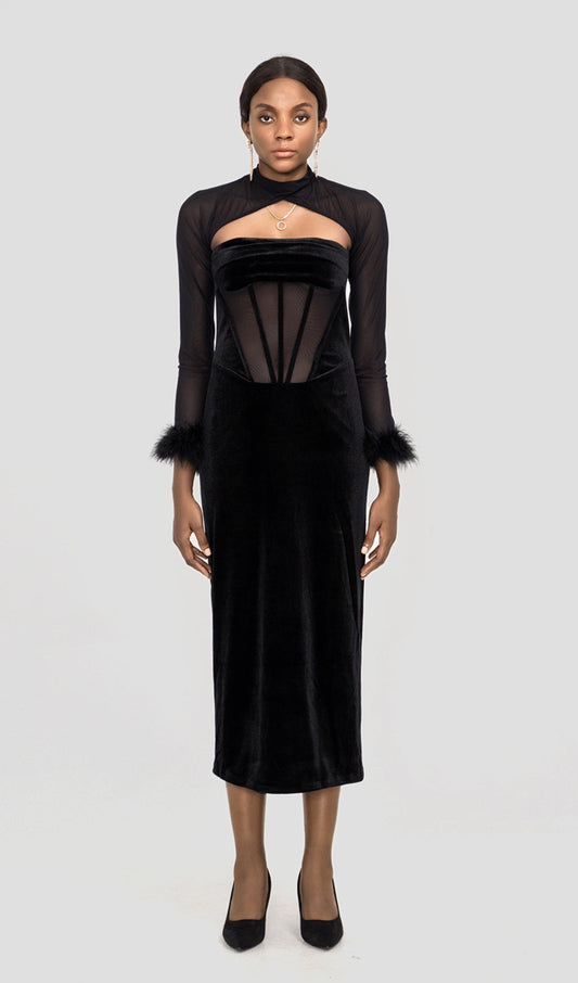 STRAPLESS CUTOUT MINI DRESS IN BLACK