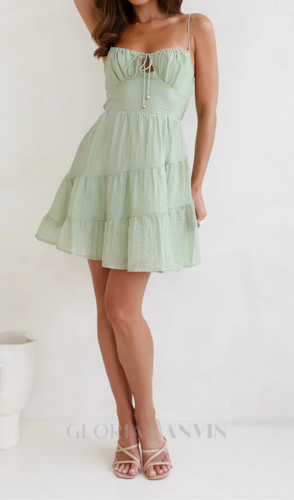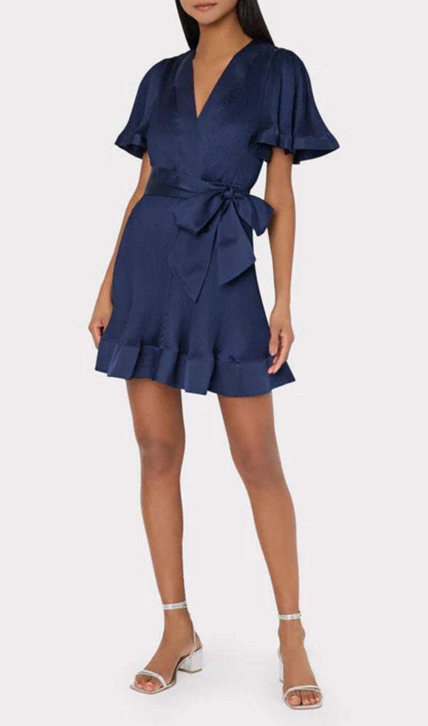 Sicily Satin Halter Rhinestone Trim Mini Dress