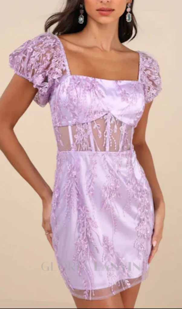 Seriously Cute Lavender Embroidered Mesh Puff Sleeve Mini Dress