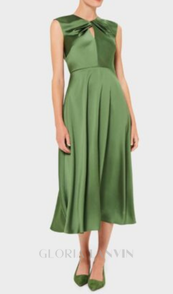 twist neck satin midi dress in green