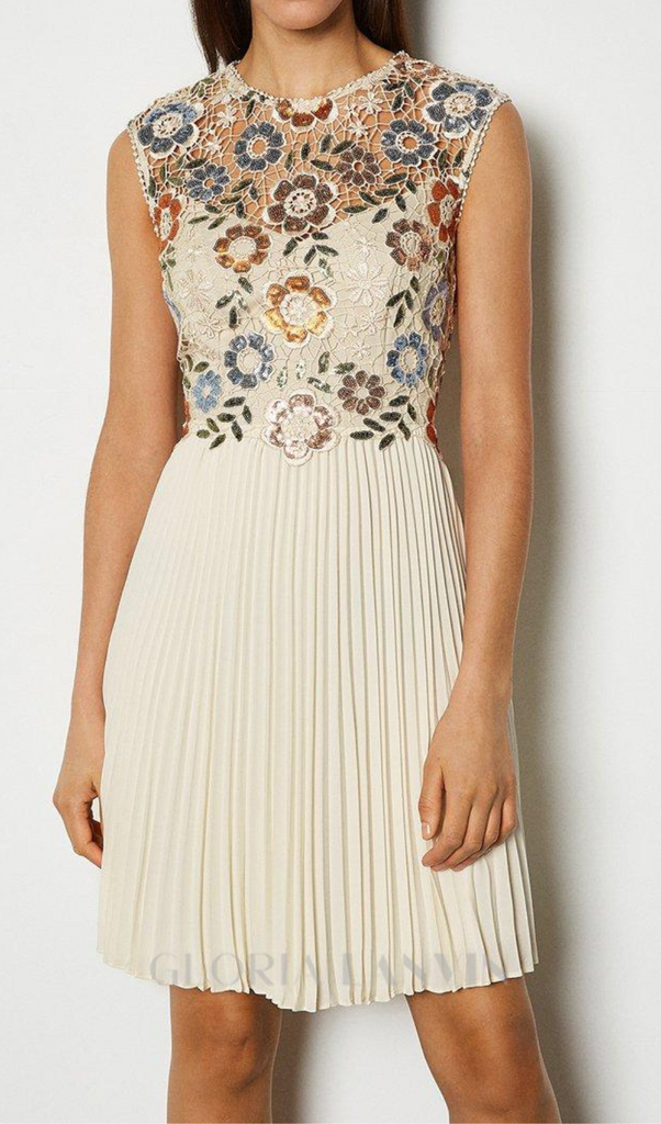 sequin lace floral mini dress in apricot