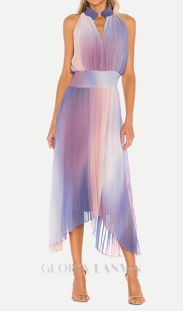 halter neck pleated midi dress in lavender tie dye