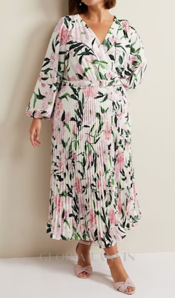 multi-coloured penny floral pleat midi dress