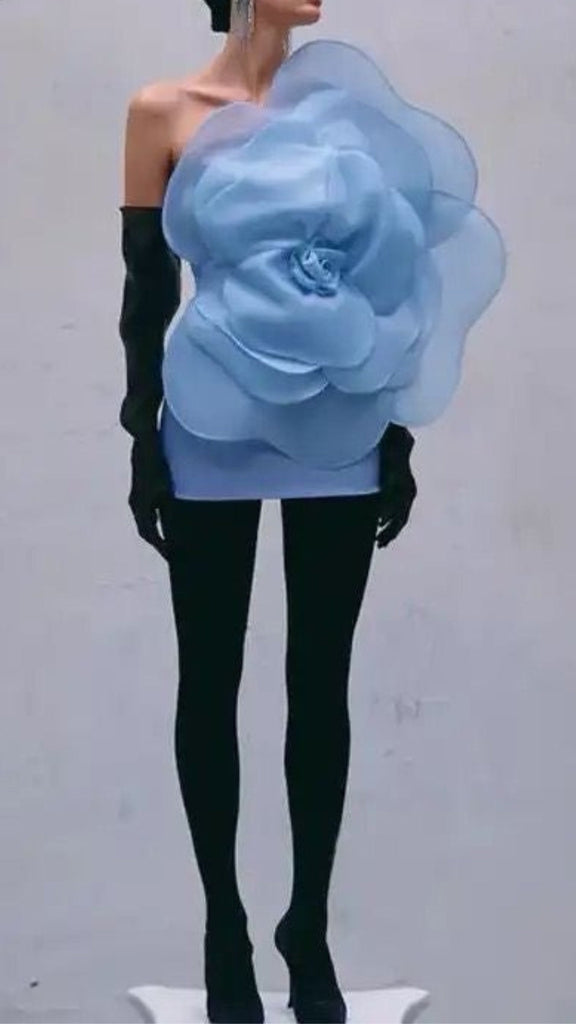 ONE SHOULDER FLOWER MINI DRESS IN BLUE