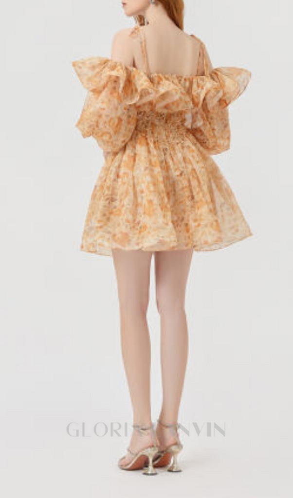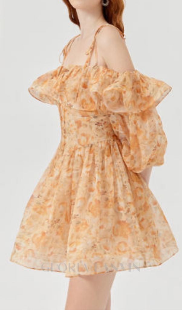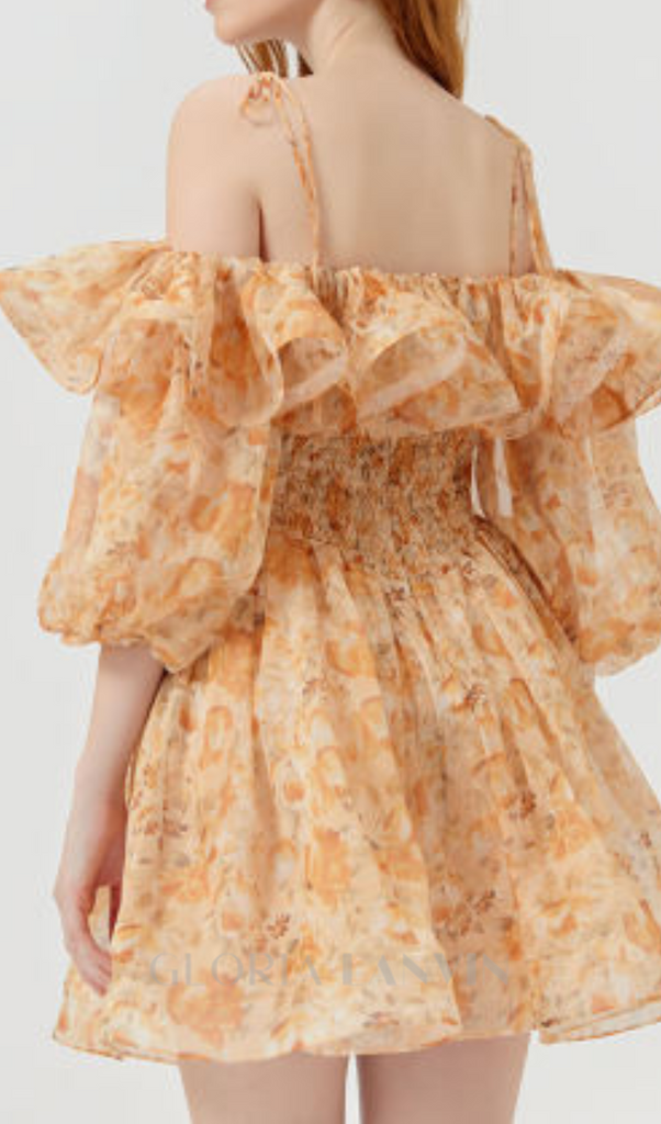 ANNA PRINTED RUFFLE TRIM MINI DRESS IN ORANGE – Gloria Lanvin