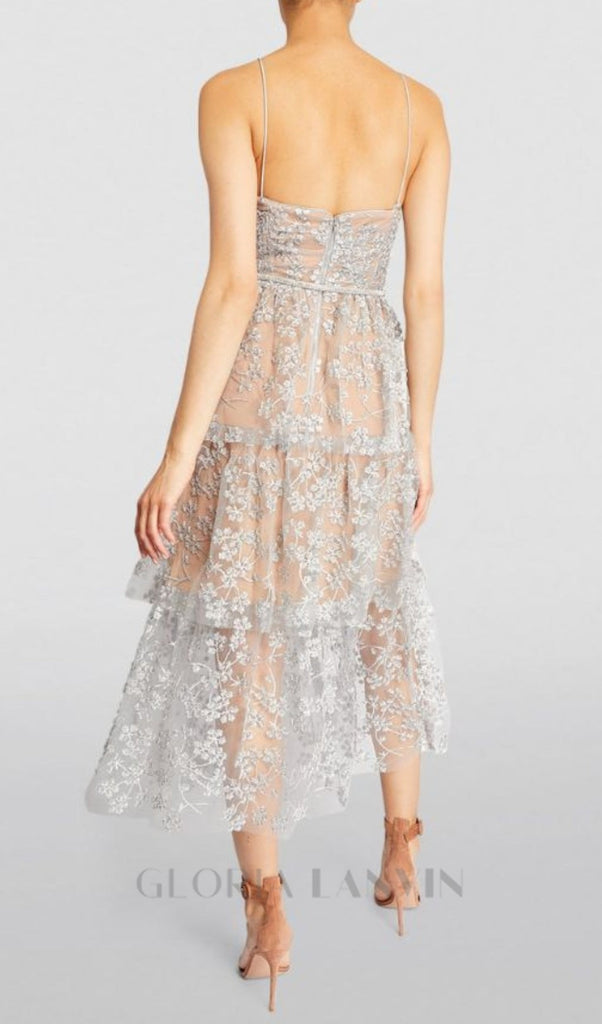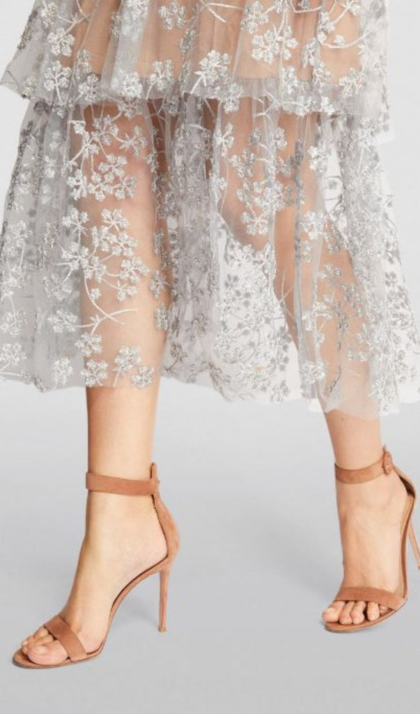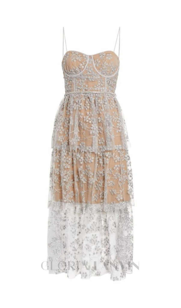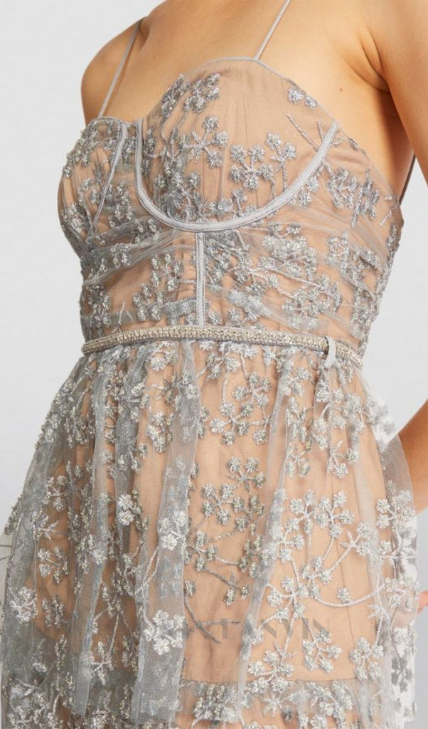 Fit for a modern-day princess, its intricate floral embellishments may be the first element that you notice, be sure not to miss the sparkling belt that wraps around its bodice.