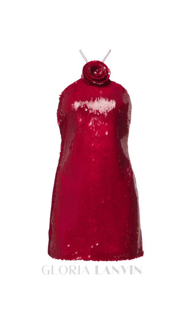 Introducing the luxurious Cinwa Floral Appliqué Halter Sequin Mini Dress in a ravishing red hue. This exquisite dress features a stunning flower appliqué design, halter neckline, and sparkling sequins that will make you the center of attention at any event. Elevate your style with this exclusive piece.